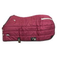 Designed for cold weather, this blanket has 300 grams polyester fiber filling with a 70-denier liner for the perfect combination of comfort and warmth. The 420-denier material is durable and has a quilted design. Double surcingle front closures provide easy on and off. The belly strap and two leg straps help keep blanket in place. Rubber grommets on surcingles offer a more secure closure.