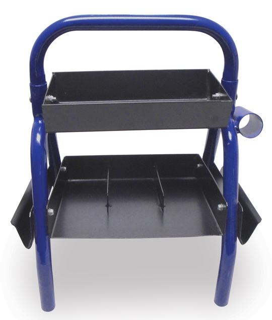 Portable Maintenance Farrier Caddy is light enough to be easily moved by hand. Large top tray to hold boxes of nails. Lower tray with three compartments to keep tools separated. Side loop to hold hammers or other tools with handles. V plates on each side easily hold rasps an other flat tools. Durable steel construction. Size: 9.75" L x 15.75" W x 18.75" H Weight: 11 pounds