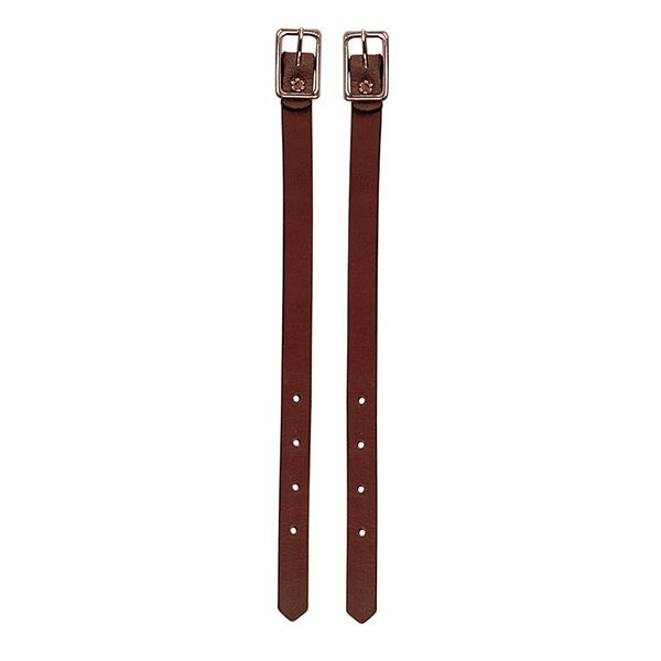 Help keep stirrup leathers in place with our bridle leather fender hobbles with smoothed and darkened edges and nickel plated hardware. Sold per pair. Measure 5/8" wide.